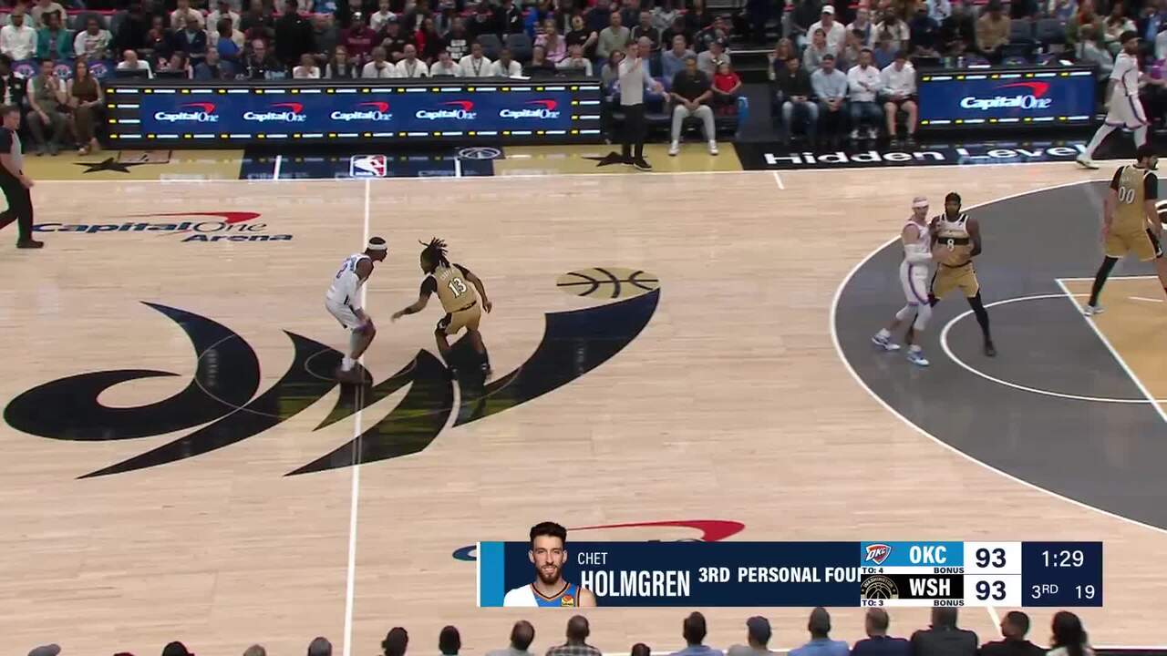 With 27 seconds to go in the second quarter, the Wizards' Justin Champagnie and the Thunder's Jaylin Williams exchanged shoves under the basket. The confrontation quickly escalated and spilled over into the baseline stands as multiple players from both teams charged in.